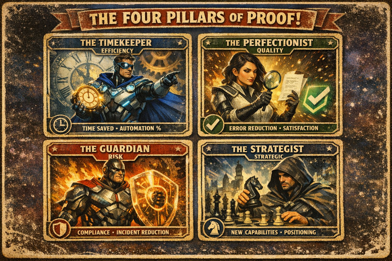 In practice: establish baselines before deployment, measure across all four dimensions, and use different time horizons for different initiative types.