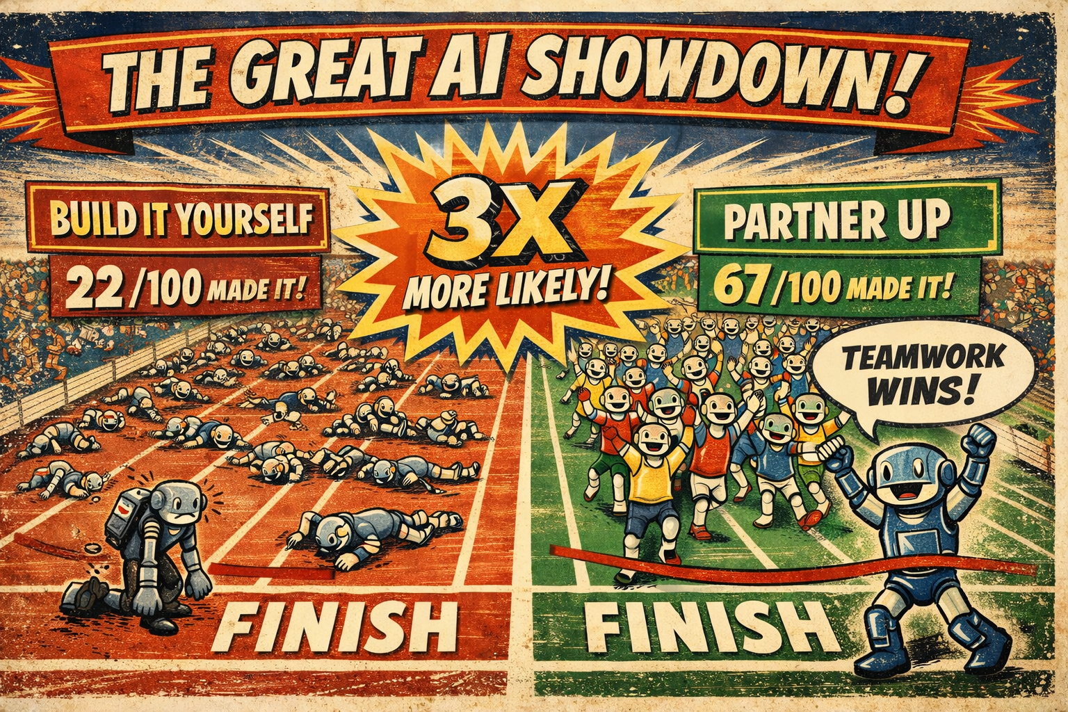 Perhaps most telling is MIT's finding on build-versus-buy decisions: vendor partnerships succeed about 67% of the time, while internal builds succeed only one-third as often.